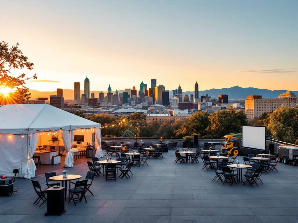 Denver’s sunshine is legendary—but so are quick weather shifts. Start with a frame or pole tent sized to guest count, and add sidewalls, weights, and heaters or fans based on season. Use LED uplights to warm the atmosphere at dusk, and select A/V (mics, speakers, projector, screen) so toasts and slides land clearly. Keep service smooth with tables & chairs, staging, and food-service equipment. Ask for a layout recommendation that accounts for entrances, catering flow, and dance floor placement.